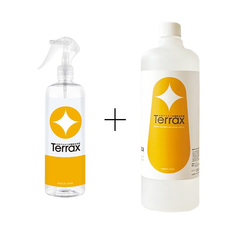 プロの現場で大活躍の業務用洗剤テラックスを、この機会にぜひお試しください!「いきなり大容量は不安…」という方のために、テラックス1リットルとスプレー容器(300ml)のセットをご用意しました。